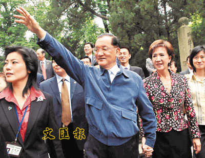 在參觀完胡雪巖故居之後,上午11點許連戰一行來到杭州岳王廟緬懷整個中華民族的民族英雄岳飛。