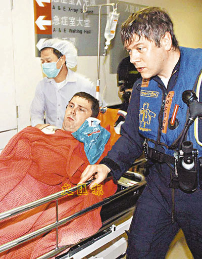 ■中暑不適的洋跑手由直升機送往東區醫院救治。