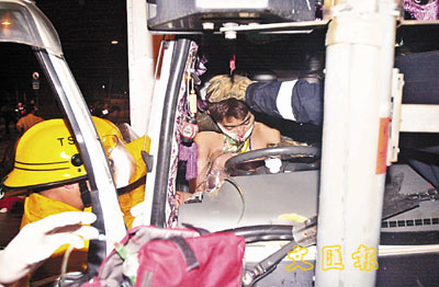 由於撞力甚猛,導致車頭向內凹陷,司機心口被?盤壓著,胸部瘀黑,當場重傷昏迷。消防員與救護員到場,動用工具將被困司機救出,惟其已全無反應。司機被送抵醫院時,證實胸骨折斷,傷重不治。