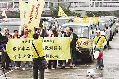 【本報訊】(記者 朱樂汶、梁嘉儀)15名客貨車司機昨到機場請願,不滿機管局早前提出限制客貨車營運的方案,向機管局代表遞交請願信,要求當局開放機場離境層作卸貨區、取消徵收月費及到機場前提早一小時通知等建議;並揚言如當局不盡快與他們對話,落實具體措施,下月可能到中環慢駛以示不滿。