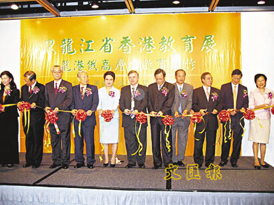 ■黑龍江省高校來港舉行教育展,昨日舉行開幕禮。左五為黑龍江教育廳副廳長趙敏。 本報記者曾媚 攝