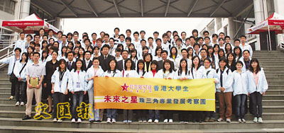 百名香港大學生在短短4天行程中,既訪問了學習環境相差甚遠的廣州大學城和山區小學,與當地學生交流,了解內地教育情況;又參觀港資、民營、中外合資及國營等不同類型的成功企業,了解內地經濟發展情況和企業經營模式;更與廣東省政府副秘書長羅歐會面,和當地傑出青年真情對話,從成功人士身上汲收奮鬥經驗。學員均認為,行程雖緊湊、時間雖短,但一路所見,令大家大開眼界,獲益良多。