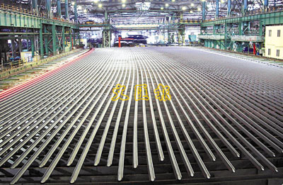 ■鋼鐵、建材等行業產能過剩的壓力繼續加大。圖為內地一家鋼鐵公司鋼軌生產線。