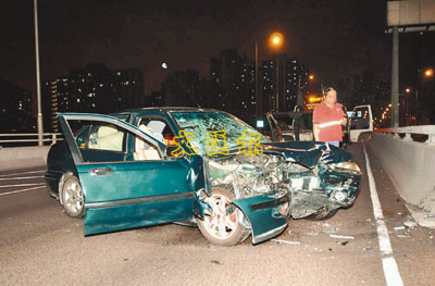 【本報訊】一輛私家車昨晨沿西九龍走廊行駛,當途至通州街公園對開時,疑避車失控,撞毀路中消防欄,再撼向石壆,車頭盡毀,擋風玻璃破裂,36歲姓李女司機頭部及手腳受傷,由其他駕車人士報警送院。