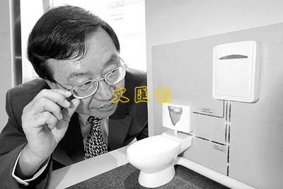 本港新發明的「輕便型廁所污水消毒系統」,能減低病毒由廁所對外傳播,令污水內99.999%的大腸杆菌在數秒內消除,適合香港狹窄環境。 本報記者羅蘭蓉 攝