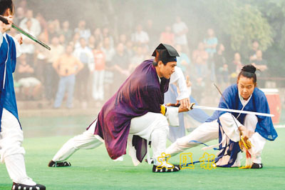 深圳民俗文化村上演中國功夫。28日,來自少林、武當、峨眉三大派武林高手雲集深圳民俗文化村,為五一黃金周遊客展示「十八般武藝」。中通社