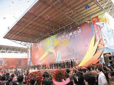 ■雲南文化產業繪就發展世界地圖,揚帆遠航。圖為首屆中國西部(昆明)文化產業博覽會開幕盛況。 本報記者和向紅 攝