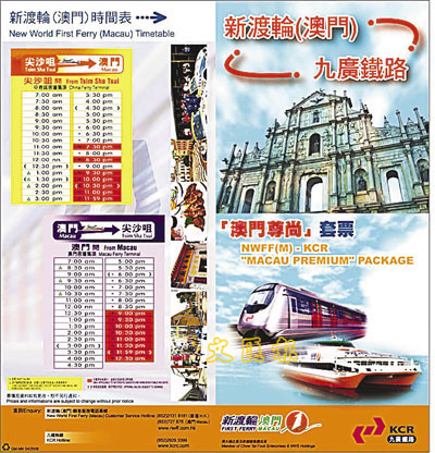 ■九鐵和新渡輪聯手推出優惠套票,市民乘坐九鐵列車和新渡輪往返澳門將有優惠。