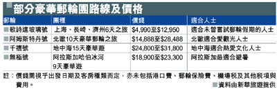 部分豪華郵輪團路線及價格 (圖)