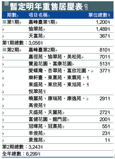 暫定明年重售居屋表 (圖)