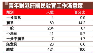 青年對港府國民教育工作滿意度 (圖)