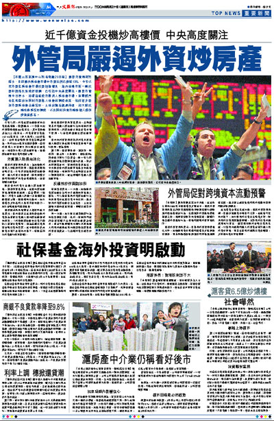 ¡@¡i¥»³ø¥_¨Ê·s»D¤¤¤ß°OªÌ®üÅÉ29¤é¹q¡j°ê®a¥~ºÞ§½²ÎpÅã¥Ü¡A¥Ø«e°ê¤º©Ð¦a²£¥«³õ¤¤¥~¸ê¤ñ¨Ò¤w±µªñ15%¡A¤µ¦~¥H¨Ó¥~¸ê¦b©Ð¦a²£¥«³õ§ë¸ê¨³²r¼Wªø¡A¬°¤º¦a¼Ó¥«·s¤@½ü§ë¸ê©M»ù®æ¤Ï¼u±Àªi§UÄi¡A¤w¤Þ°_¤¤¥¡°ª«×Ãöª`¡C°ê®a¥~ºÞ§½¤µ¤éªí¥Ü¡A±N«ÂIºÊ±±¥~¶×¬y¤J©Ð¦a²£¥«³õ¡C¦³Ãö³¡ªù¤]¦b¦Ò¼{¥X¥x¨î¥~¸ê¶i¤J¦a²£ªº½Õ±±¬Fµ¦¡A¥]¬A³v¨B¨ú®ø¥~¸ê©Ð¦a²£¥ø·~µ|¦¬¡B¤g¦a¥XÅýµ¥Àu´f«Ý¹J¡A¥[¤j¹ï§ë¾÷©ÊÁʩе|¦¬½Õ±±¡A¥H¤Î¨î¦V¹Ò¥~¾÷ºcÓ¤H´£¨Ñ«ö´¦¶U´Úµ¥¡C