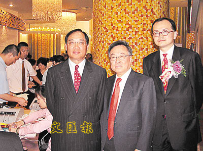 ■爪哇控股執行董事謝文彬(左)、董事林成泰(中)視察西門口廣場銷情。 本報記者陳悅 攝