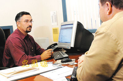 ■ALSCO人力資源經理Tony(左)正展示網上電腦驗證。美聯社