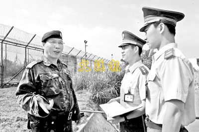 ■深港警方合力打擊跨境犯罪屢建奇功。圖為香港羅湖橋工作崗的警務人員(左一)和廣東邊防六支隊十中隊的官兵在每周一次的會晤中交流。資料圖片