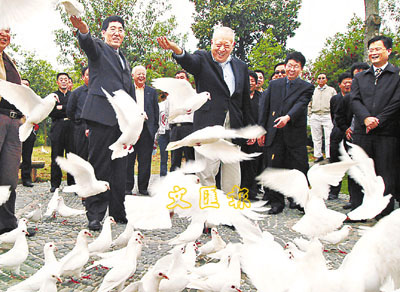 ■董建華在寧波金峨村「弄鴿為樂」。