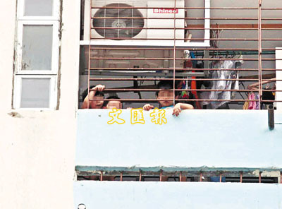 ■劉家3姊弟在白田h家中露台,望向街上的記者。