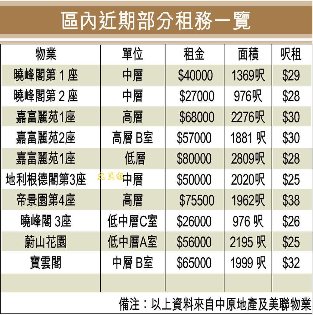 區內近期部分租務一覽 (圖)