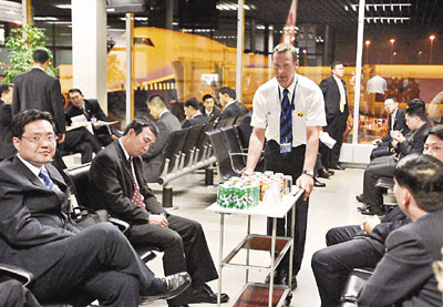 ■扁專機5日夜降阿姆斯特丹機場加油,一趟巴拉圭之行,兩次落地加油,隨團成員把握間歇休息時間。 中央社