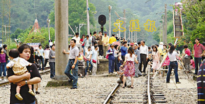 ■開發赴台觀光也存在隱患,包括配套設施不足等。圖為人潮於日前勞動節假期塞爆了三義觀光景點勝興車站。 中央社