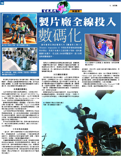 一直以來,業界以為數碼影院可以節省複製菲林拷貝的開支、加強畫面質素、以及杜絕盜版,今年影院數碼化開始後不久,發現原先以為的好處卻不是那一回事,不過幸好有另外一些優點,令數碼化繼續如期進行。