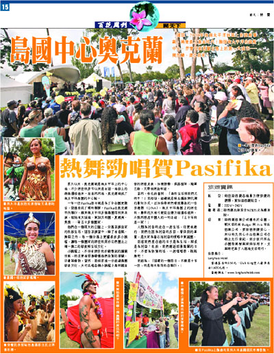 一年一度Pasifika節日就是為了令各國更融洽,促進彼此了解而舉辦。Pasifika在奧克蘭市內舉行,請來南太平洋多個島國居民來表演,包括有大溪地、東加共和國、夏威夷、斐濟……等五十多個國家。