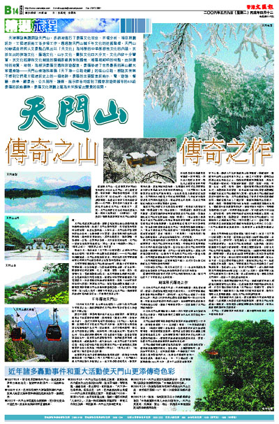 或許,驚世駭俗的天工造化,歷史進程的千年滄桑和厚重積澱,以及無數人的夢縈魂繫和激情壯舉,使得天門山本身成為一個傳奇,值得用身心體驗與解讀的美麗傳奇,值得永遠追隨與期待的美麗傳奇。