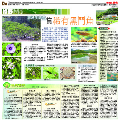 登過獅子山後,今次來到位於西貢半島北岸的山谷——深涌,目的是體驗一下生態自然環境。這兒是多種蜻蜓蝴蝶的生活理想地,也是鹹淡水魚,如全球稀有的黑鬥魚的「居所」。深涌三面環山,擁有幽美的自然景色;豐富而多樣的生物;寧靜舒暢的群山綠水,的確是熱愛郊野人士的好去處。