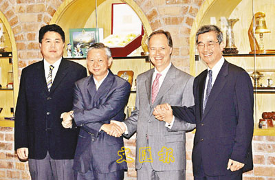 ■保安局局長李少光(左二)、美國駐香港及澳門總領事郭明瀚(右二)、深圳海關關長鄒志武(左一)及香港海關關長湯顯明(右一)在記者會上互相握手。本報記者潘達文 攝