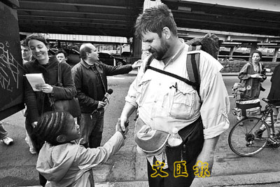 ■沃特在紐約接受小女孩的祝賀。 法新社