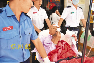 ■被譽為「國民黨金牙大狀」的老翁送院。本報記者蔣焯文 攝