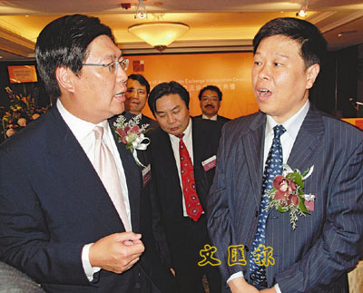 ■馬時亨與王軍暢談。 本報記者葉傲冬 攝