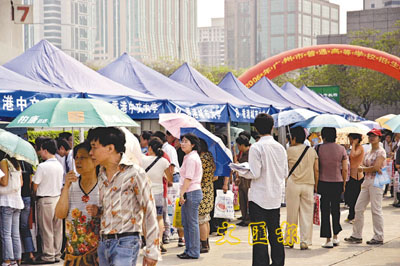 【本報珠三角新聞中心記者王放廣州13日電】又是內地高考的時候,香港多間知名大學群起北上攬才。港大、中大等知名大學今年均擴大了內地的招生名額;而最高達50萬元的獎學金,更令曾因經濟問題望「港」興歎的內地考生趨之若鶩。據統計,中大、港大、城大、理大和科大五所大學,今年內地攬才保守估計已逾千人。而昨日在廣州舉行的「2006年廣州市普通高等學校招生諮詢會」上,香港幾所大學的攤位更是人山人海。據港大一位負責人表示,該校帶去的6,000多份介紹單張,不消一小時已被搶一空。