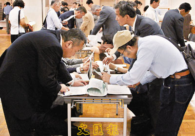 ■上世紀80年代、90年代日圓被迫步步升值導致日本經濟長期低迷。圖為東京失業人士到職業博覽會一碰運氣。 資料圖片