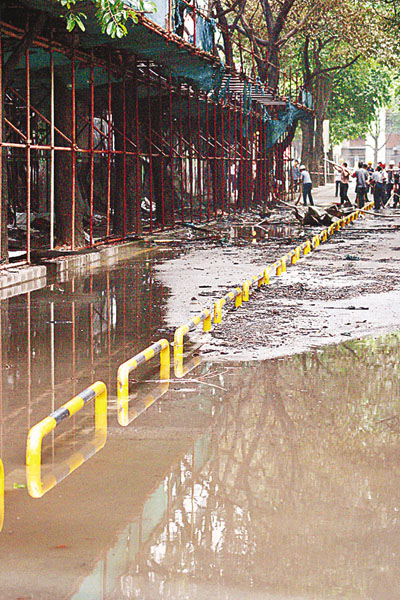 15日下午4時30分許,深圳華強北中航路中航鼎城國際樓盤工地發生火災,有關部門立即調遣附近消防中隊近10輛消防車滅火,1個多小時後大火終於被撲滅,幸尚未造成傷亡報告。據查,火災原因是工地一樓電焊的火花引燃臨時宿舍附近晾曬的衣物所致。 本報記者鄭海龍 攝