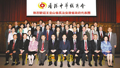 【本報訊】正在香港訪問的安徽省長王金山一行昨日到訪中華總商會。王金山介紹安徽今後的發展重點是要建成為優質農產品生產和加工基地、加工製造業基地、能源、原材料基地及交通樞紐,同時發展信息產業、高新技術產業。