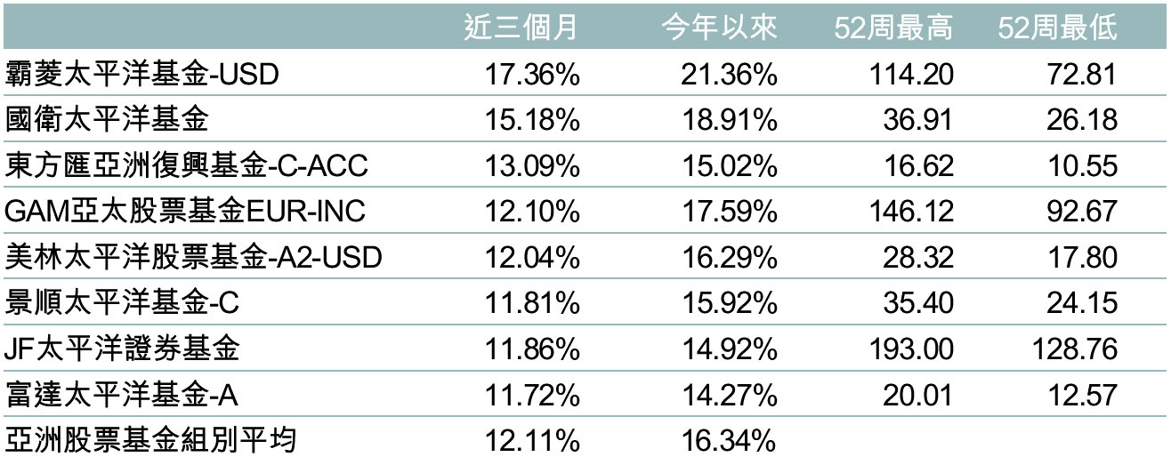 基金經理指出,亞股市盈率仍維持在低水位,即使股價淨值比目前來到2.1倍,但就是因為股東權益率的改善,股價仍顯得合理。