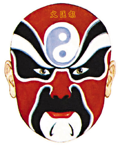 龐統臉譜上有太極圖,表明他軍師的身份。