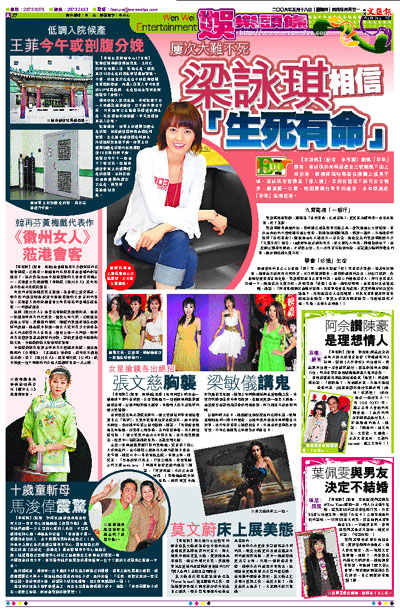 梁詠琪態度樂觀,總認為「生死有命,已成定局」,更笑言新碟尚有一首歌未錄完,死了怎辦。