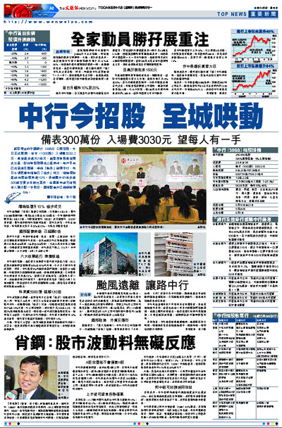 ¡@¸U²³´Á«Ýªº¤¤°ê»È¦æ¡]3988¡^¤½¶}©ÛªÑ¡A¤µ¤é¥¿¦¡®i¶}¡A¨C¤â¡]1000ªÑ¡^¤J³õ¶O3030.3¤¸¡A¶°¸ê³Ì¦h¹F767»õ¤¸¡A³Ð»´ä·sªÑ¶°¸ê¾ú¥v¤§³Ì¡A¶Õ±N·sªÑ¼ö¼é±À¤W³Ì°ª®p¡C´²¤á¦«e¤wªf³fÀx¨¬¼uÃÄ¡A·Ç³Æ¡uûö¨¡v»{Áʤ¤¦æ¡A¬Q¤é¥«³õ§ó¶Ç¦³·t½L¤w¡u°½¨B¡v¦¨¥æ¡A·t½L»ù¸û³Ì²×©w»ù·¸»ù°ª¹F10%¡C©Ó¾P¹Î¥ç¦L³Æ¦h¹F300¸U¥÷¶À¥ÕªíÀ³¥I»Ý¨D¡A¨ÃºÉ¶q§Æ±æ¥i°µ¨ì¨C¤HÀò¤À°t¤@¤âªÑ¥÷¡A°ê»Ú°t°â¥ç¤w¶WÃB»{ÁÊ6¿¡C