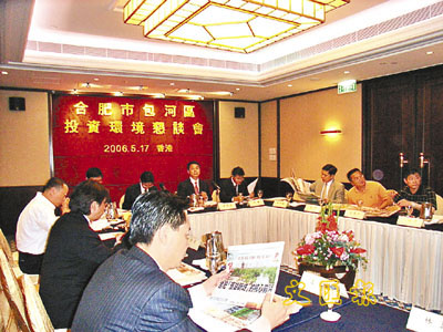 【本報訊】(記者 趙臣)合肥市包河區昨舉行投資環境懇談會,吸引眾多港商參加。區長阮永興介紹,包河區發展迅速,一直受到港商青睞。合肥市「濱湖新城」建設的核心區域、前沿陣地就是包河區,地產等項目充滿機遇。到會港商對包河區的地產項目充滿興趣。