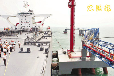 ■「巨無霸」諾神號油輪進靠洋浦海南煉化30萬噸級原油碼頭。 本報海南傳真