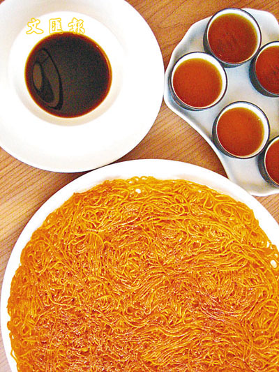 以蛋麵煎成的乾燒伊麵,是一道傳統的潮州小食,可蘸黑醋或糖吃。($58)