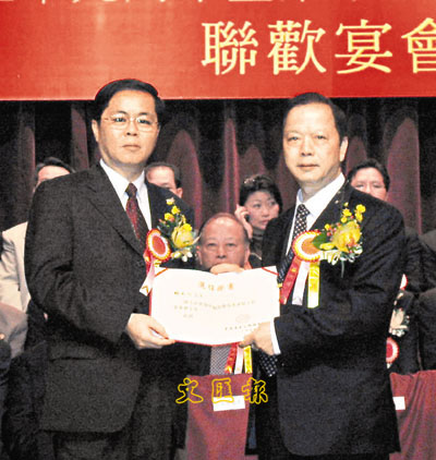 ■主禮嘉賓莊奕賢副部長(左)頒發證書予駱大川主席。