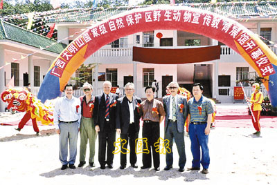 【本報訊】香港南頭鄉親總會日前組團返鄉,該會理事長鄭梓根與捐資支持廣西大明山國家級自然保護區、保護野生動物宣傳教育的香港南頭鄉親總會「吳氏保護野生動物保護基金」執行人吳詒蔭、吳詒曾,聯同中聯辦九龍工作部副部長余汝文一起往當地出席自然保護區的保護野生動物宣傳教育展館開幕儀式。參加開幕禮的還有大明山國家級自然保護區保護局的眾多職工和當地民眾逾百人。