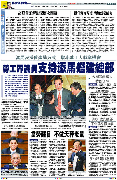 另外,多名勞工界議員在答問大會上,質疑當局可化解爭議,短期內推行5天工作制,卻迴避最低工資立法問題。曾蔭權解釋,正因5天工作問題不用面對立法問題,才可以一錘定音,但最低工資問題富爭議性,要求各界就立法取得共識並不樂觀,故期望各界先讓勞僱會討論。他希望勞顧會盡快就立法達成共識,並擴大政府就最低工資所定下的標準合約應用範圍。