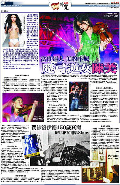 ¡@¾Ú^°ê¡m¬P´Á¤é®õ±à¤h³ø¡n¤W¤ë©³µoªíªºÃÀ¤H·s¶Q´I»¨±Æ¦æº]¡A²{¦~¤G¤Q¤C·³ªºµØ¸Ç¤k¤p´£µ^®a³¯¬ü¡]Vanessa Mae¡^¡AÀ»±Ñ¦~»´¤£¦Aªº¡u¸U¤H°g¡vºÑ«w·Aºû¦h§Q¨È¡]«e»¶©f¦¨û¡^¡A¦W¦C¤T¤Q·³¥H¤U¦~»´´I±Cº]º¡C