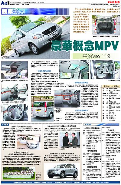 平治一向被視為貴族象徵,駕駛著平治車,在在彰顯出車主不凡的氣派。市面上的七人車以平實風格為主,但要數到貴氣的七人車,除平治MPV的Vito外根本不作他想。今次平治推出最新版本七人車Vito 119,加重豪華裝備之餘,也巧妙增強車廂的空間感,務求令乘客有更豪華舒適的享受。
