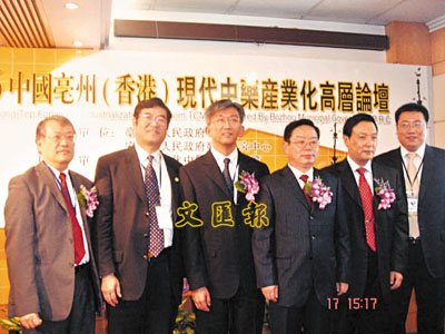 【本報訊】(記者 梁曉睿)由安徽省亳州市政府、安徽省政府發展研究中心和香港現代化中醫藥國際協會日前在港共同舉辦的「2006中國亳州(香港)現代中藥產業化高層論壇」,來自香港和內地的專家就如何利用香港的資本及市場優勢,推進中藥現代化、產業化、國際化進行了探討。