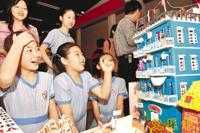 透過實地觀察、研究及創作,讓學生關心社區古事古蹟文物的「關心社區文物」計劃昨於九龍公園文物探之館展出,今年共有38個學校及青年區中心參加。學生們分別利用木板、發泡膠及咭紙等材料製造一座座建築模型。本報記者李志樑 攝